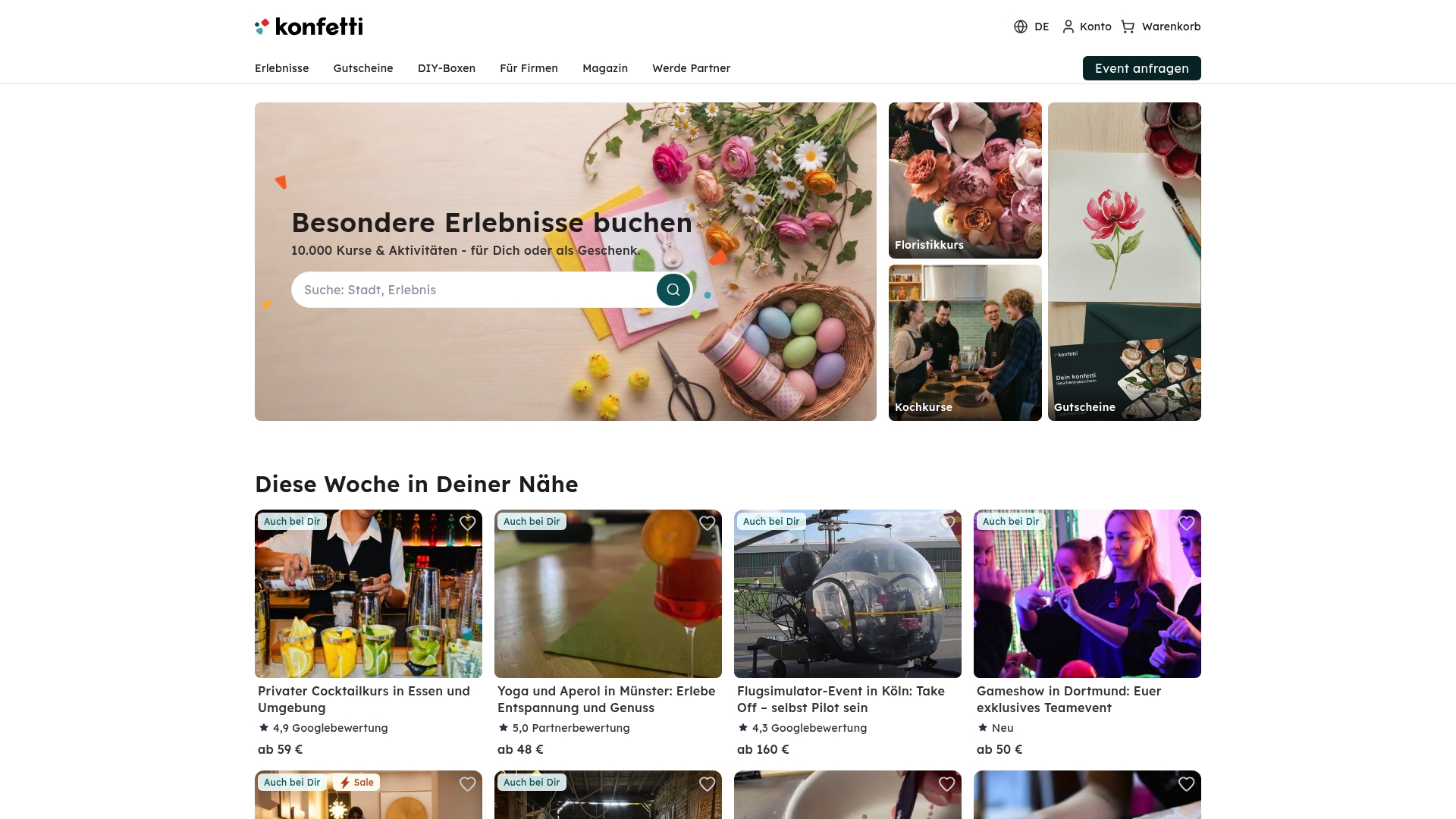 gokonfetti is an experience marketplace that lists a broad selection of workshops, team events, and gift options across Germany and Austria. For Berlin HR managers, it works as a practical catalog of cultural and hands-on activities you can book or gift.