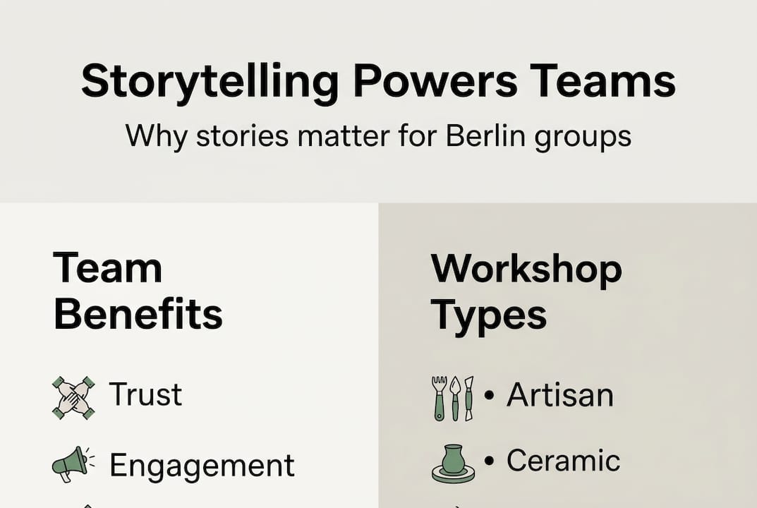 Stories are remembered 22 times more than facts alone. Yet most team-building programs still lean on trivia nights, escape rooms, and awkward icebreakers that everyone forgets by Monday morning. The real opportunity sits somewhere else entirely: in shared narratives, co-created experiences, and the kind of storytelling that makes people feel genuinely seen. This article gives you practical storytelling frameworks, real examples from Berlin's artisan scene, and a clear path to building teams that actually collaborate. If you're an HR professional or team leader tired of the same old playbook, keep reading.